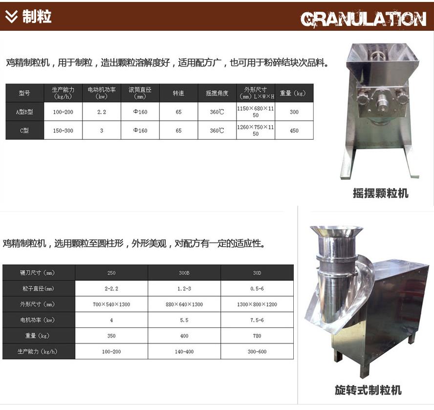 品正干燥設(shè)備有限公司多年來始終至力于雞精、雞粉生產(chǎn)流水線設(shè)備的研制與開發(fā),至今已研制出多條不同工藝的成套雞精、雞粉生產(chǎn)流水線設(shè)備,且設(shè)備都采用全不銹鋼制作來滿足用戶在QS認(rèn)證的需求。目前已設(shè)計(jì)了新一代雞精專用生產(chǎn)線,滿足了用戶能生產(chǎn)高品質(zhì)雞精的這一要求,成為了國內(nèi)^有名的雞精生產(chǎn)線生產(chǎn)企業(yè)之一,并且已經(jīng)有數(shù)個(gè)工程案例可供用戶參觀認(rèn)證。我公司可根據(jù)用戶的實(shí)際要求進(jìn)行工程設(shè)計(jì),目前單條生產(chǎn)線的產(chǎn)量有100kg/h、200kg/h、300kg/h、500kg/h、800kg/h、1500 kg/h、2000 kg/h等。雞精生產(chǎn)線所需的造粒機(jī)產(chǎn)量600-1000公斤。